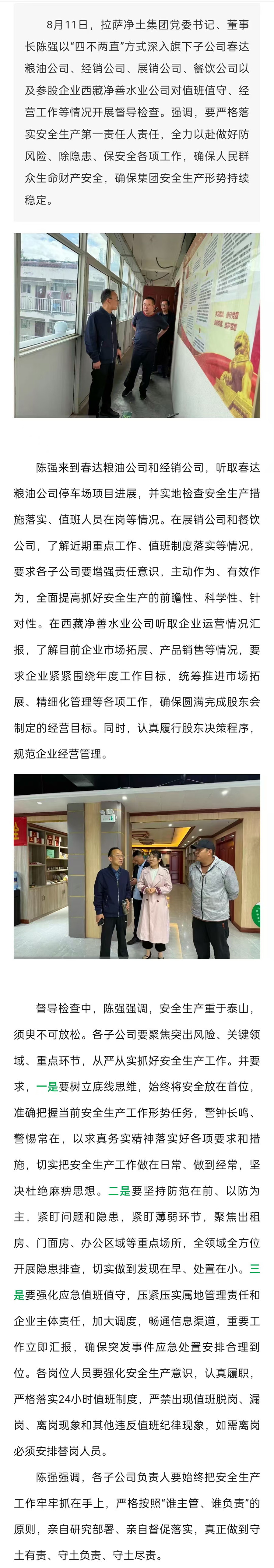 市政府國(guó)資委主任洛桑扎西一行蒞臨拉薩凈土集團(tuán)指導(dǎo)檢查工作