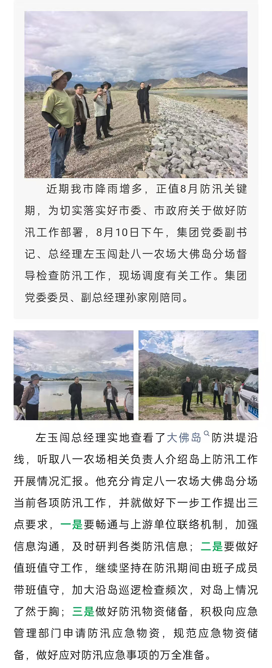 集團(tuán)總經(jīng)理督導(dǎo)檢查八一農(nóng)場大佛島分場防汛工作