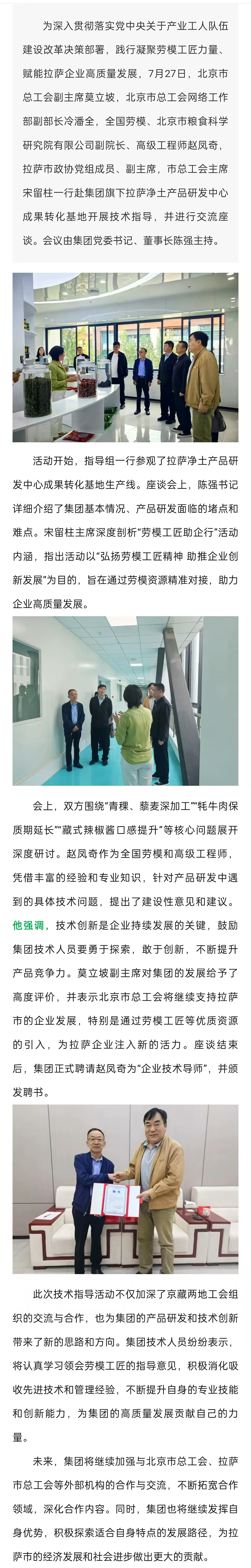 京藏?cái)y手促發(fā)展 勞模工匠傳匠心——2025年“勞模工匠助企——拉薩行”赴拉薩市凈土產(chǎn)業(yè)集團(tuán)開(kāi)展技術(shù)指導(dǎo)