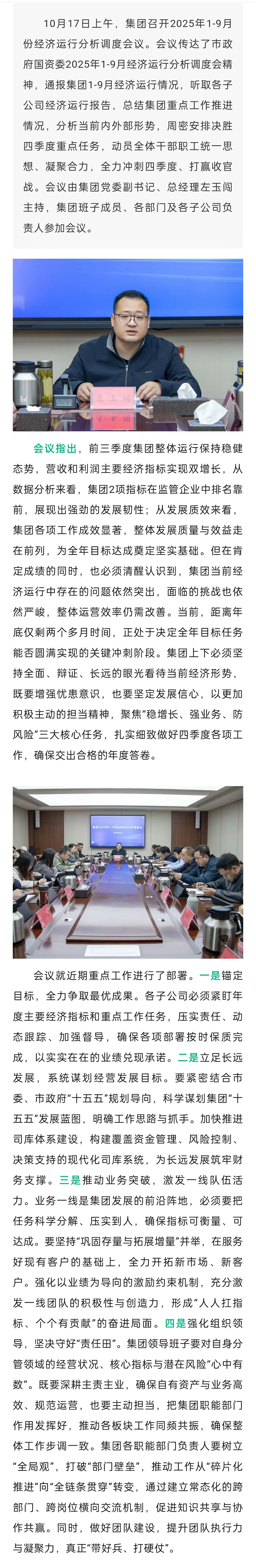 集團(tuán)召開2025年1-9月份經(jīng)濟(jì)運(yùn)行分析調(diào)度會(huì)議