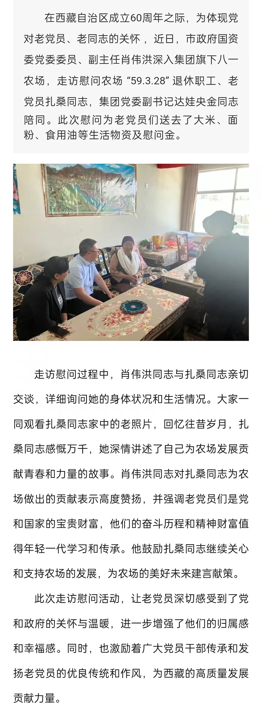 拉薩市政府國(guó)資委深入集團(tuán)旗下八一農(nóng)場(chǎng)開(kāi)展走訪慰問(wèn)活動(dòng)
