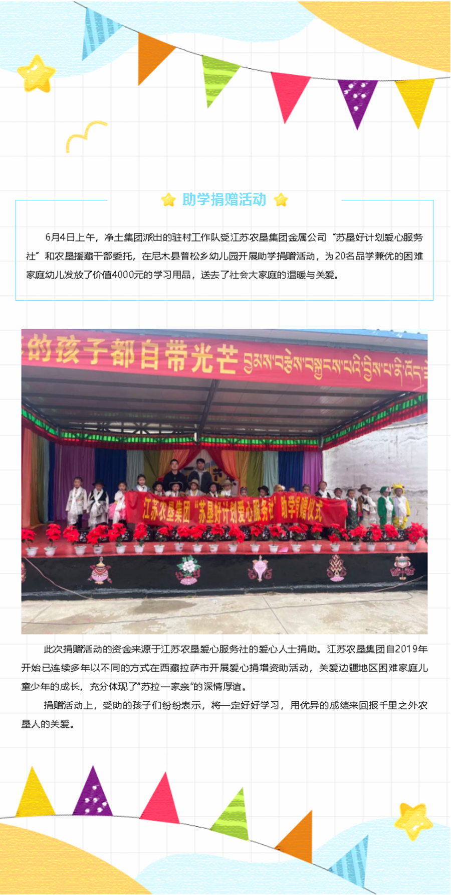 市凈土集團(tuán)受援單位江蘇農(nóng)墾集團(tuán)“蘇墾好計(jì)劃愛心服務(wù)社”在普松鄉(xiāng)幼兒園開展助學(xué)捐贈(zèng)活動(dòng)
